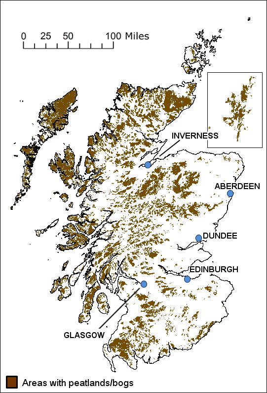 Looking at the map, how much peatland can be found near where you live (25 miles around the place you live)?